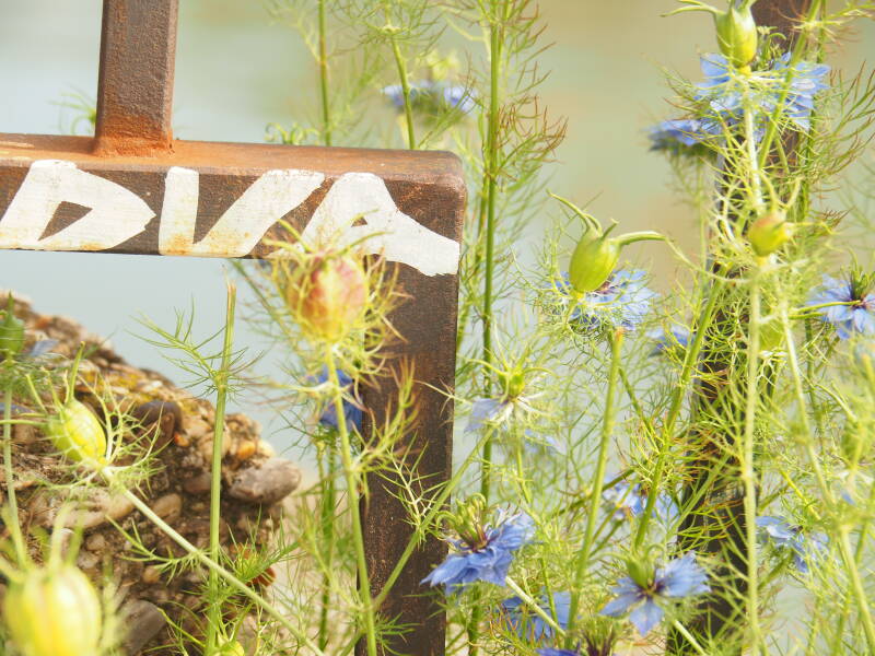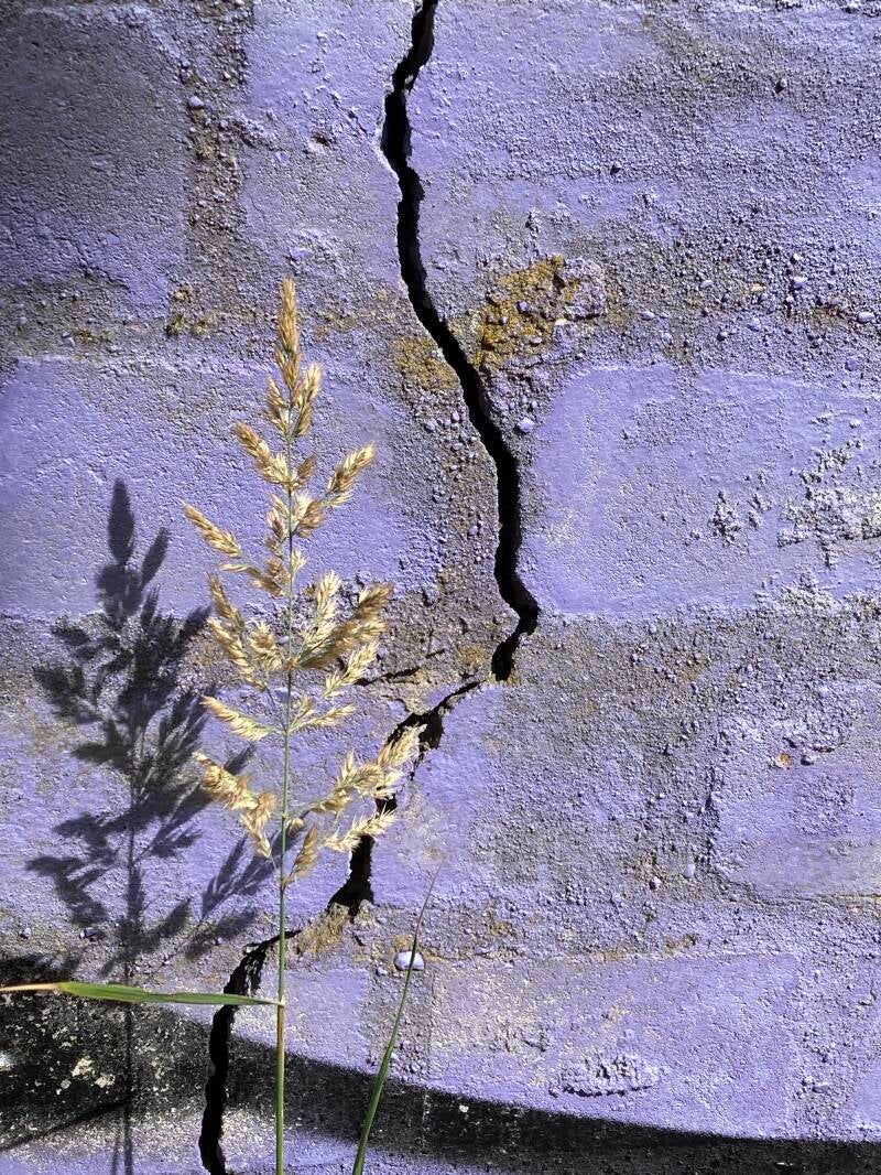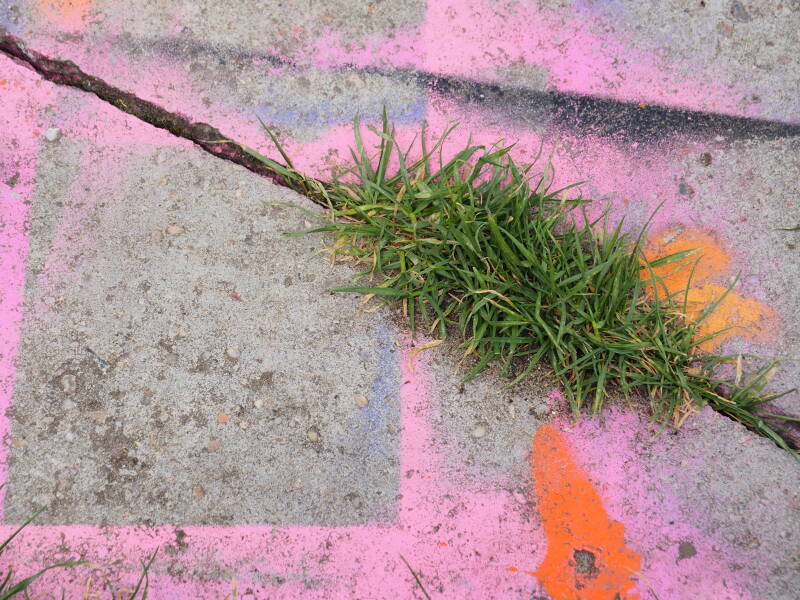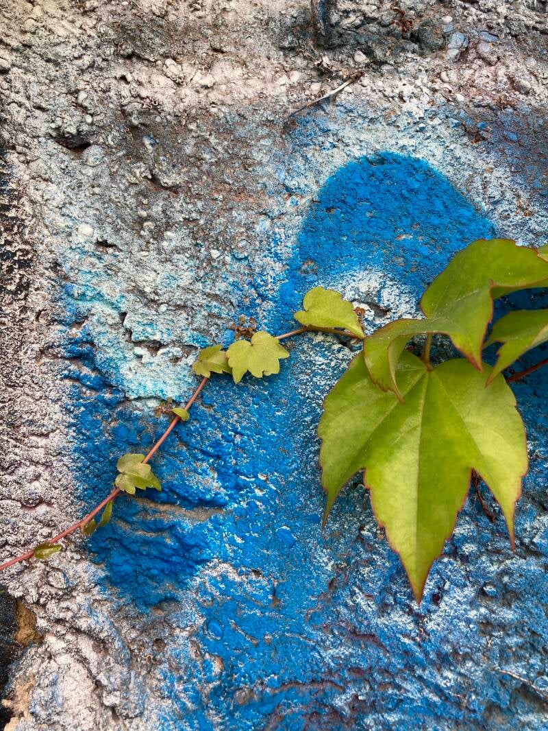 De juxtapositie van bloemen en planten in hun sierlijke, onschuldige uitdrukking en de rauwheid van een bespoten muur vind ik schitterend en razend interessant.